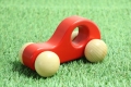 | 特徴・工夫 | お子様が体重をかけても壊れない強度があります。 指をはさむ事のないように、本体とタイヤの間を少なくする為に、 タイヤの作り方を工夫しました。 タイヤの接着を強固にする為に、 シャフトに溝のある棒を使っています。 安全な塗料を使用しています。 |