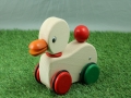 押すとメロディが流れるダック カラフルなパーツと白木のぬくもり感の 木の魅力を生かしたほどよく丸みがかったフォルムが 押したり引いたりするとダックが首を振り、 シンプルなつくりのおもちゃなので、 また、小さなお子様が投げつけたりできないように、 安心感のある国産の木製玩具なので出産祝いの贈り物にもおすすめです。 |
