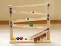 スロープを転がる木球が調律された音盤をかけ抜けます
