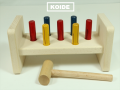 お子様の大好きな叩くおもちゃです。 ハンマーで叩くという動作は、 木棒(ペグ)をたたいて、台座に差します。 色棒(ペグ)の間隔は、ハンマーの直径より広くしてありますので、 ペグが台座まで落ち込んだら、 赤ちゃんが、テーブルやお皿をたたき始めたら、”ハンマー遊び”であそびましょう! |