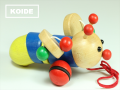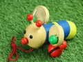 | 遊び方 | カラフルな体がとてもかわいいハチのプルトーイ 赤と緑の木球が付いた羽をクルクル回しながら、追いかけていきます |