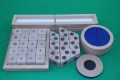 6面マグネット積み木・三角マグネット積み木は どの面を合わせても二つの積み木がくっつきます 「できる」を支え、数量の感覚と「初めて」の楽しい算数を応援する教具です スチール収納枠は、表面の鉄板に白塗装し、裏に磁石を埋め込んでいます。 パーツ4種は、表面の鉄板に青塗装し、裏にマグネットシートを貼っています。 |